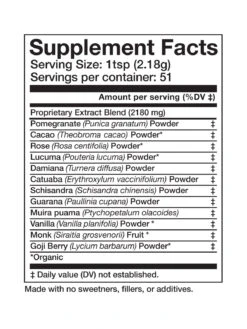 The botanicals in this formula are traditionally used to uplift the spirit and promote a sense of joy, ease, and sensual vitality. These herbs have been revered across cultures for their ability to support emotional balance, soothe the nervous system, and help the body adapt to occasional stress.*