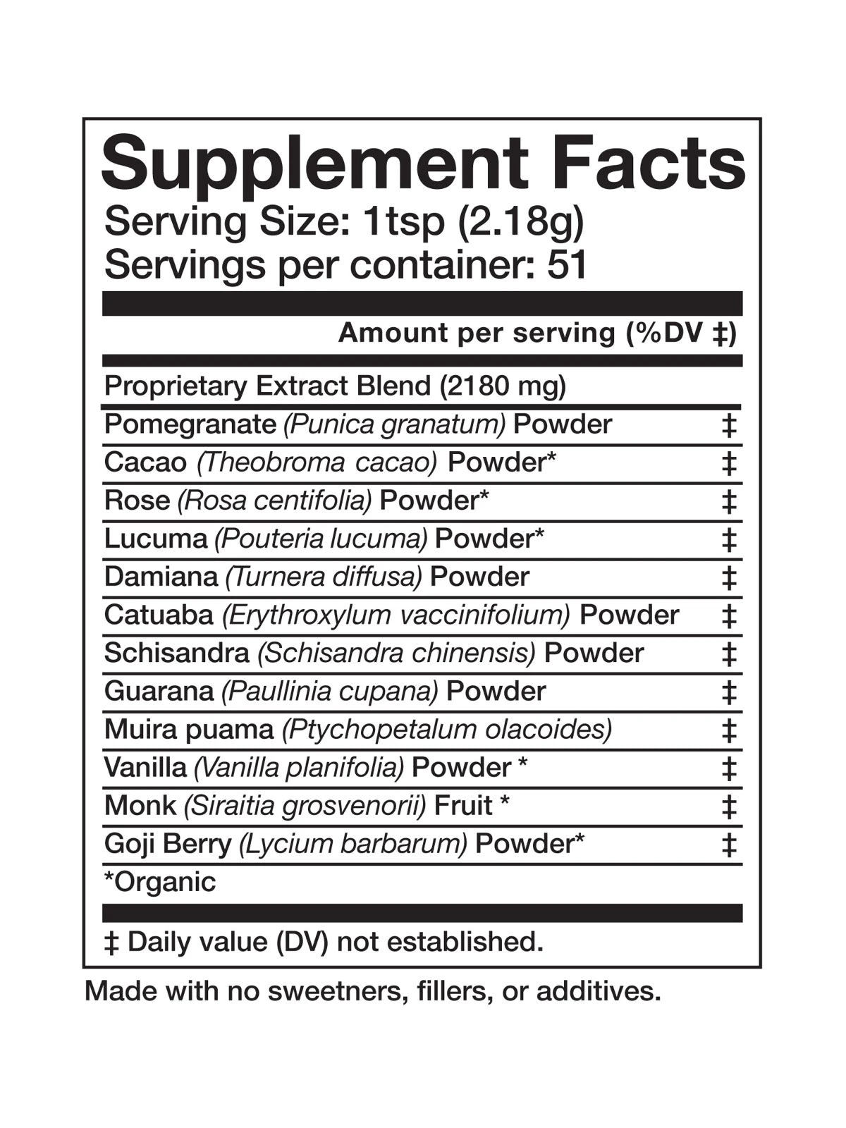This powder blend is a botanical celebration of mood, love, and creative vitality—made to inspire ritual and radiance from within.*