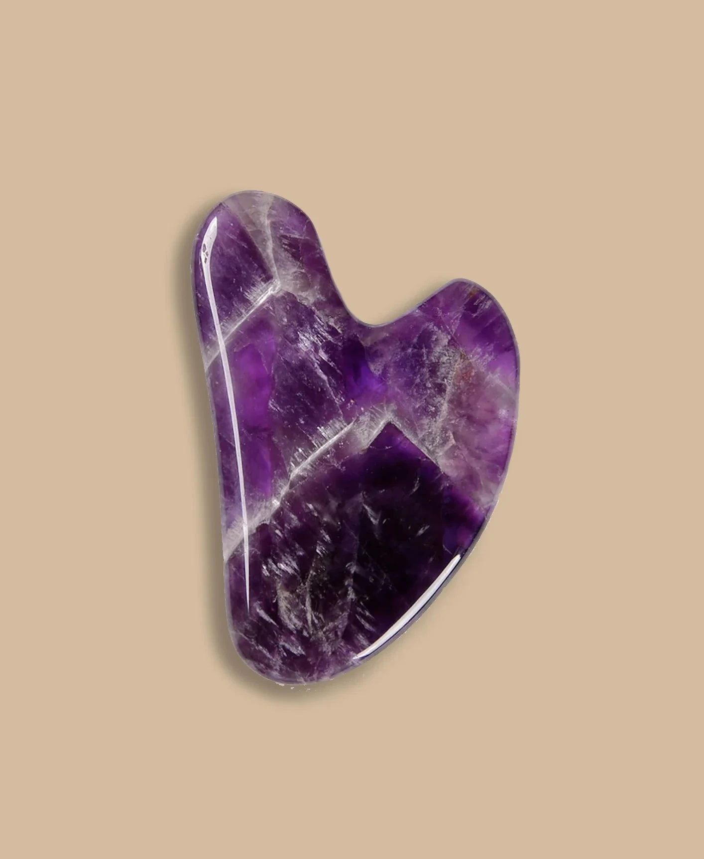 Amethyst Gua Sha: a traditional Chinese medicine tool designed to promote overall health and lymphatic drainage; made of Amethyst, a natural crystal formed from volcanic lava*