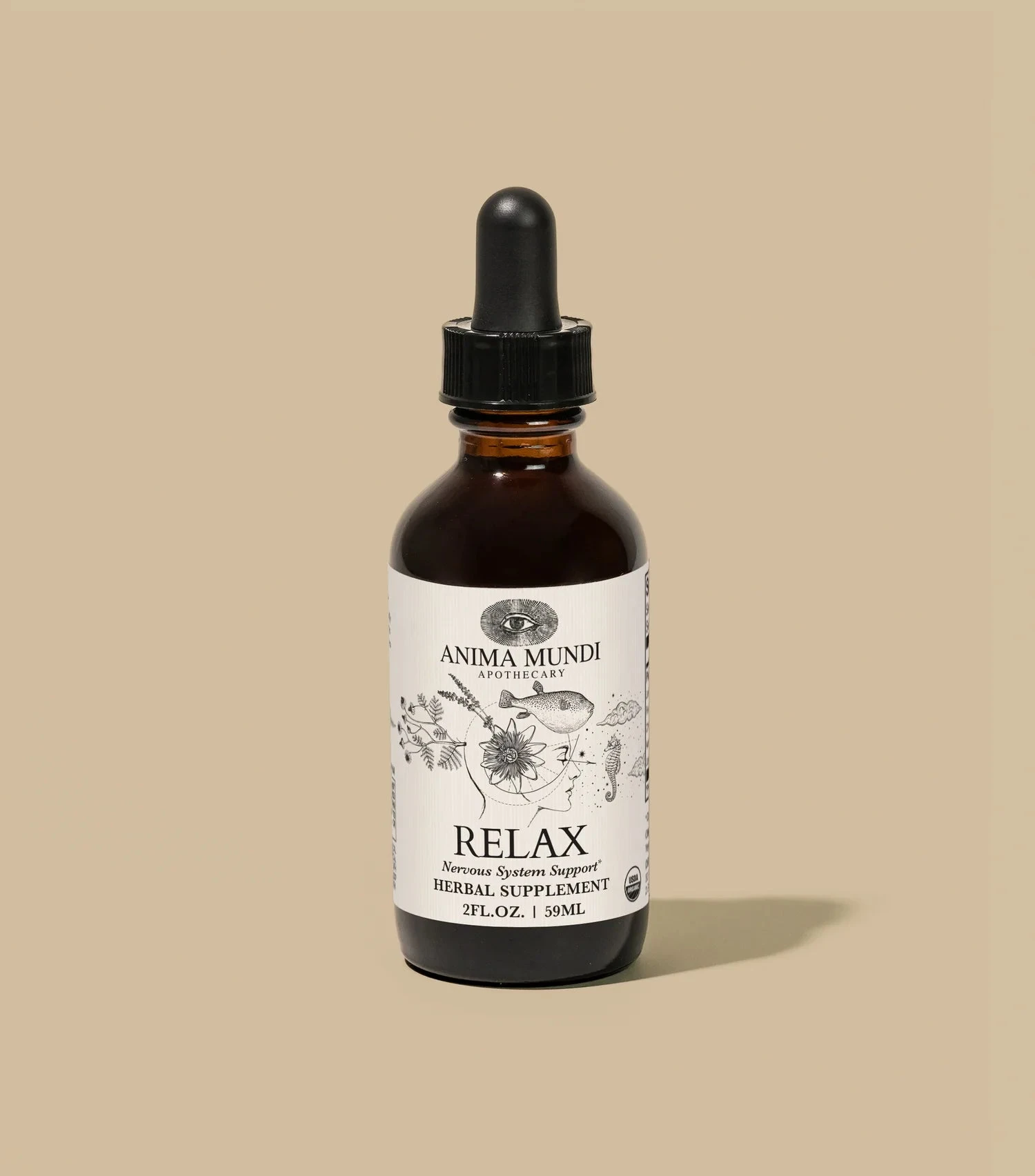 Relax Tonic: a soothing tonic created to help you unwind and return to center, supporting emotional well-being, a calm nervous system, and inner ease*