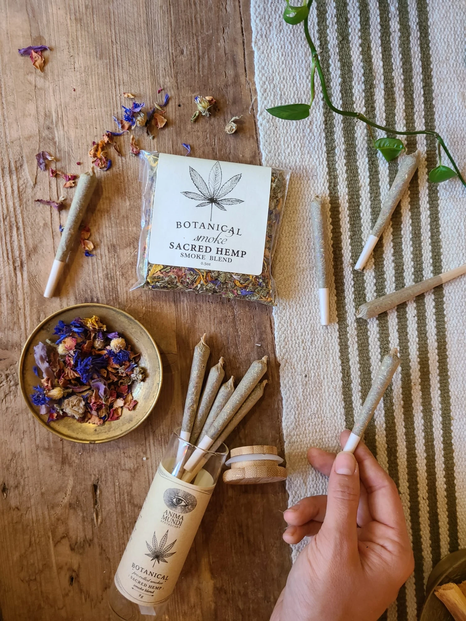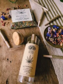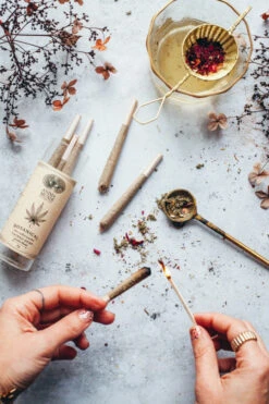Our Hemp based blend is composed of 35% organically grown Hemp flowers from Oregon, along with euphoric herbs like Blue Lotus, Damiana and Rose … PLUS lung supportive plants like Mullein, Raspberry Leaf, and more!*Â