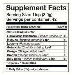 Featuring Ginkgo, Gotu Kola, Lion’s Mane, Tulsi, Brahmi, and Mucuna, this potent, undiluted formula brings together some of the world’s most respected mind-supportive herbs—crafted for your daily rituals of clarity and connection.*